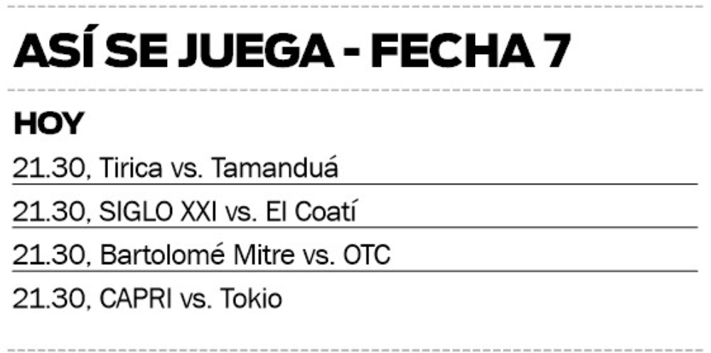 En la Capital provincial, también, CAPRI será anfitrión de Tokio, en un juego importante para los dos. El Azurro no quiere resignar el tercer lugar de la clasificación, mientras que el Oriental está al acecho de Mitre y aún sueña con arrebatarle el uno de la general.