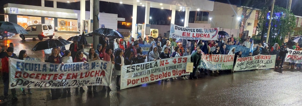 La lluvia intensa que azotó la provincia no frenó a los docentes de llevar su reclamo por un mejor salario a las calles: hubo marchas en Posadas, Garupá, Jardín América, Montecarlo, San Ignacio y San Vicente. Las asambleas de los educadores se replicaron en las escuelas, no solo de estas localidades, sino también en Leandro N. Alem, Concepción de la Sierra, Mado, San Antonio, San Javier, entre otras.