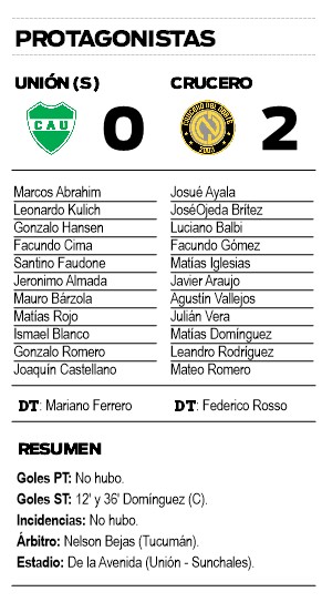 A veces hay que tocar fondo para salir a flote y es un dicho que bien se puede aplicar al caso de Crucero del Norte. Es que, tras un partido para el olvido de local, este sábado se hizo fuerte de visitante alcanzó tres puntos de oro en el 2-0 ante Unión de Sunchales, que sirvió para ponerse en puestos de clasificación.