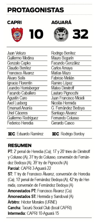 CAPRI sufrió este sábado el primer cimbronazo del castigo que pesa sobre su plantel superior, al caer ayer como local ante Aguará de Formosa por 32-10 en el marco de la cuarta fecha del Súper 10 del Torneo Regional del Nordeste.