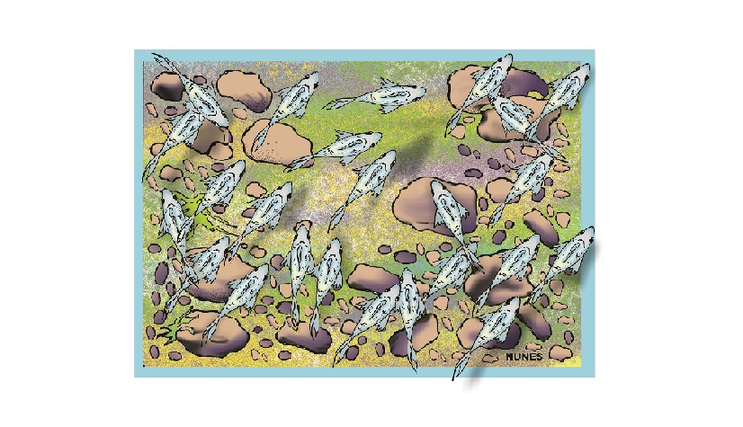 Varias mojarras brillantes, se movían ágiles, en el agua transparente.
