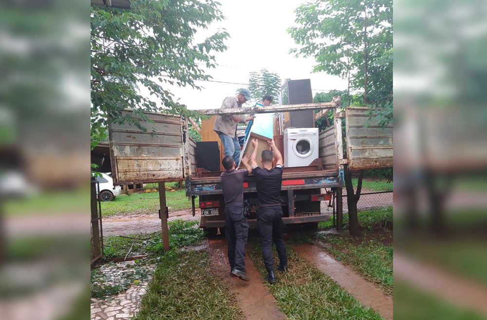 Tanto en El Soberbio como en Panambí las familias permanecen en salones y otros hogares mientras desciende el río Uruguay para comenzar la limpieza y el retorno a los barrios.