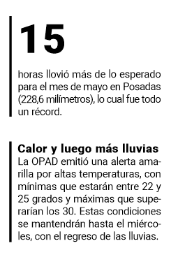 Por su parte, el intendente de Panambí, Rosendo Fuchs, explicó a este Diario que “gracias a Dios paró la lluvia y el río está en bajada”. Acerca de los afectados, señaló que “tenemos 10 familias evacuadas, con otras 4 autoevacuadas que están en las casas de sus vecinos en la zona del puerto, en el barrio 14”. Estos vecinos, trasladados por la crecida del río, “están en el salón de usos múltiples municipal y de la iglesia católica están asistidos. Algunos ya quieren ir a limpiar sus viviendas para volver a habitarlas”. Durante este lunes, indicó que “vamos a hacer un recorrido para ver si están seguras y luego habilitar para que algunos puedan volver a sus casas”.