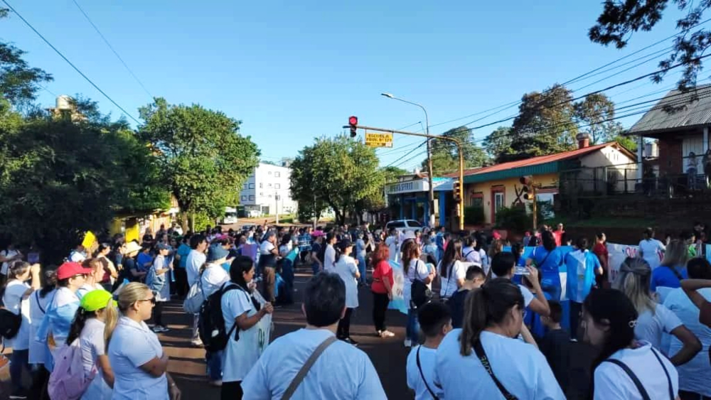 Este lunes, en Eldorado se lleva a cabo una convocante marcha por la ciudad, que incluyó una movilización hasta el edificio municipal. Son varias escuelas que se autoconvocaron.