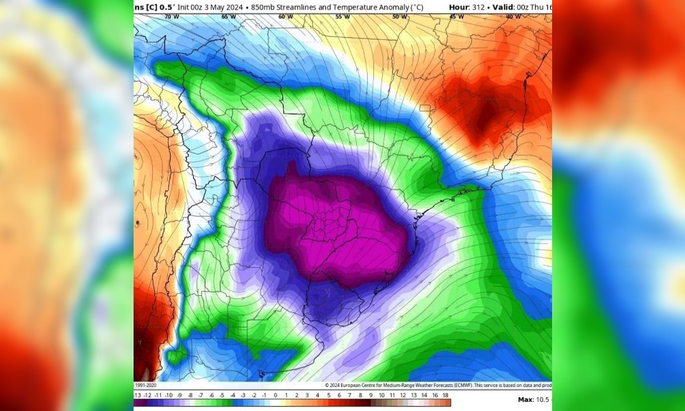 De acuerdo al informe, se espera que esta masa de aire polar alcance Misiones, el este de Paraguay, así como el sur y sureste de Brasil, después del 13 de mayo.