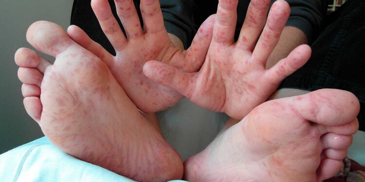 El virus mano-pie-boca, también llamado Infección Coxsackie o Fiebre Aftosa humana, es una enfermedad pediátrica altamente infecciosa aguda común, caracterizada por la aparición de exantema febril benigno (erupción de la piel de color rojizo, más o menos extensa, que suele ir acompañada o precedida de fiebre), erupciones vesiculares típicas en las palmas de las manos, las plantas de los pies, las nalgas o la boca y puede presentarse dolor de garganta y cabeza.