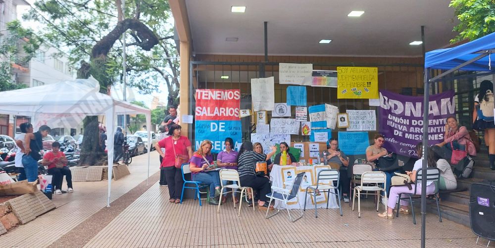 Este miércoles continúa la huelga de hambre por parte de docentes posadeñas, en el marco de lucha por recomposición salarial, fuera del Colegio Provincial N° 1 “Martín de Moussy”.
