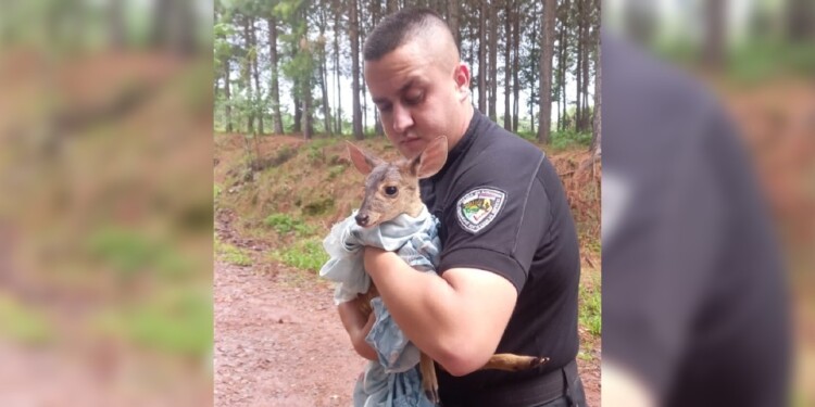 Este miércoles por la tarde, personal de la Policía de Misiones con asiento en Oberá rescató y resguardó a un joven ciervo macho, que al parecer se encontraba perdido y fuera de su hábitat natural.