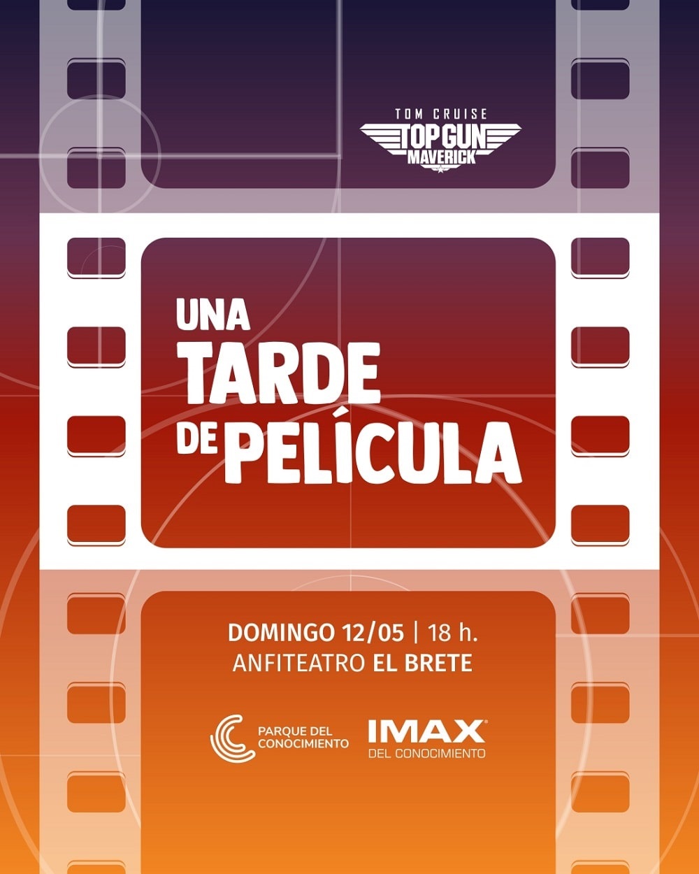 El domingo, desde las 18 horas, el Parque del Conocimiento presenta el ciclo Una tarde de película en el Anfiteatro El Brete con la proyección de Top Gun: Maverick. Una experiencia cinematográfica extraordinaria que presentará filmes presentados en el IMAX del Conocimiento, al aire libre, con pantalla LED de alta resolución y sonido envolvente 5.1. La entrada será libre y gratuita.