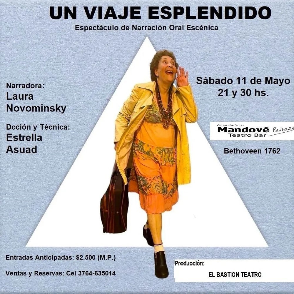 El sábado 11 de mayo, a las 21.30 se presentará en El Centro Artístico Mandové Pedrozo (Beethoven 1762), el espectáculo de narración oral escénico Un Viaje Espléndido.
