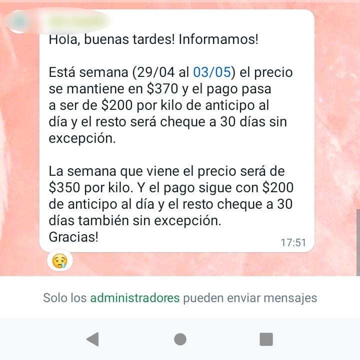 Si se analiza el comportamiento del sector en los últimos cinco meses se puede ver que al principios de diciembre se pagaba poco $370 pero al contado y si bien a medida que pasaba el tiempo y el INYM no lograba reunir a todo su directorio para mejorar el precio o al menos lograr un laudo, todavía se creía que era posible seguir peleando para subirlo de $370 a $505, como se pretendía a fines del años pasado.