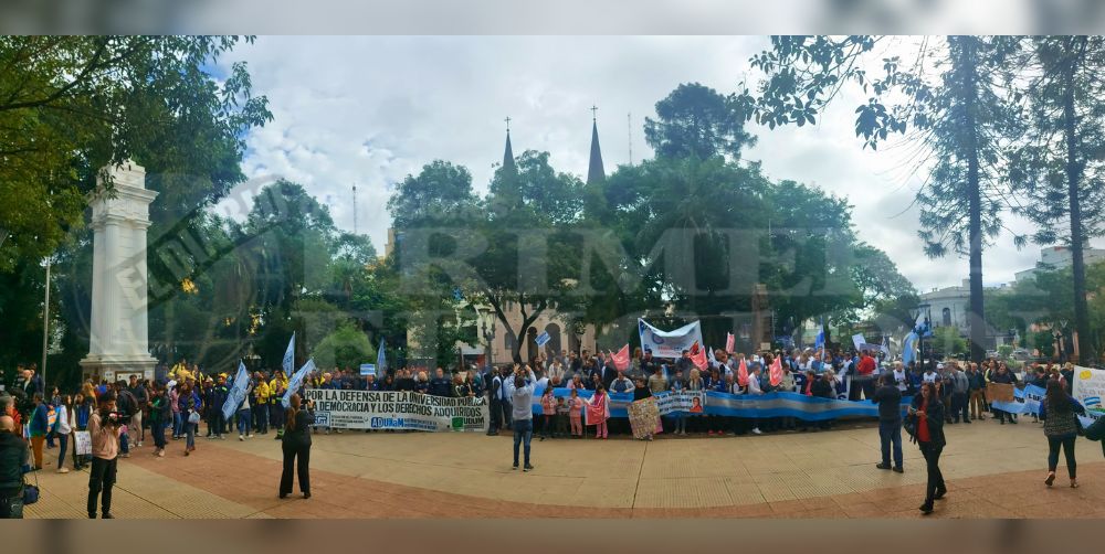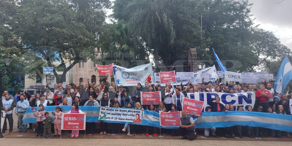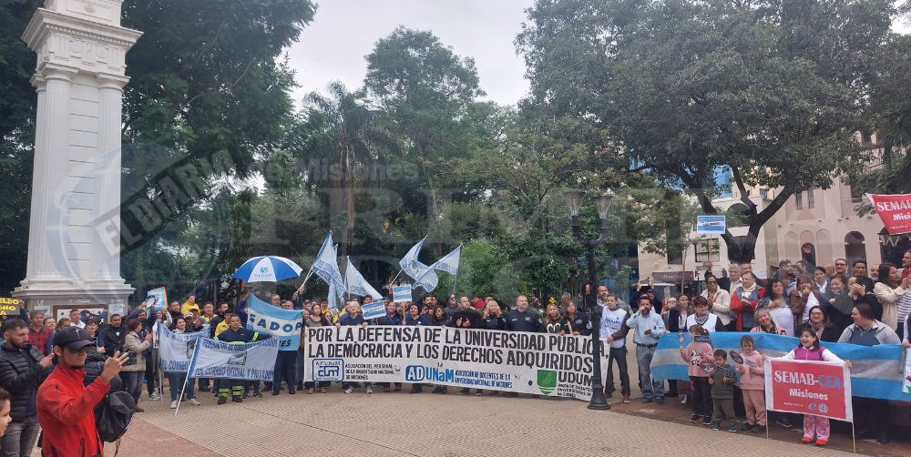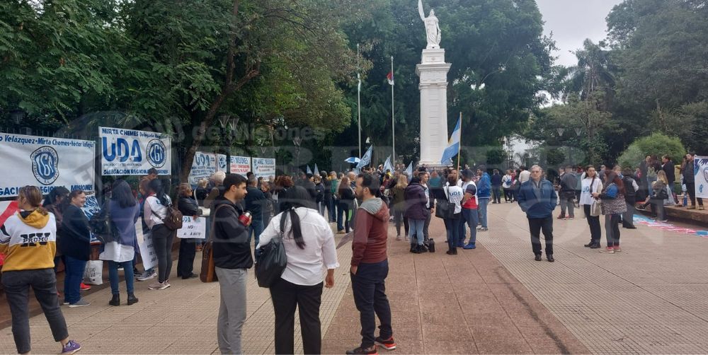 Este jueves en el marco del paro nacional convocado por la Confederación General del Trabajo (CGT), distintos sindicatos se congregaron en la plaza 9 de Julio de Posadas para protestar por el ajuste del gobierno nacional, despidos que se dieron en diferentes sectores, aumento salarial y las reformas laborales de la Ley Bases, que se tratan actualmente en el Congreso de la Nación.