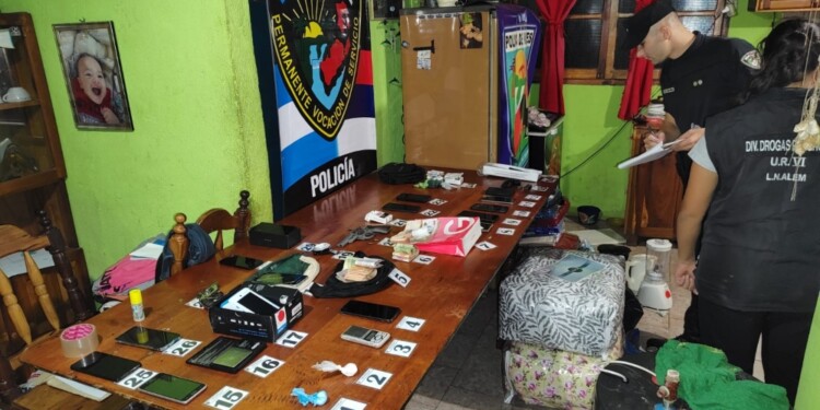 Durante la intervención los agentes incautaron 43 envoltorios de cocaína, marihuana lista para la comercialización, tres balanzas digitales de precisión, dos revólveres y una pistola calibre 22. También 14 celulares , 308 mil pesos, 100 reales, un termotanque, una garrafa, una licuadora, una pava eléctrica, una cafetera y prendas que habrían sido robadas.