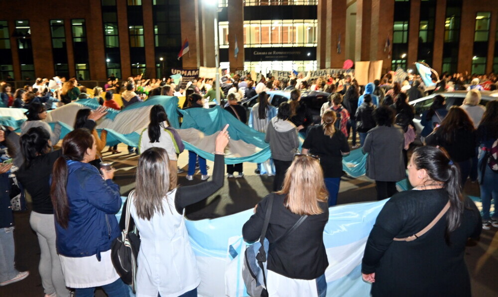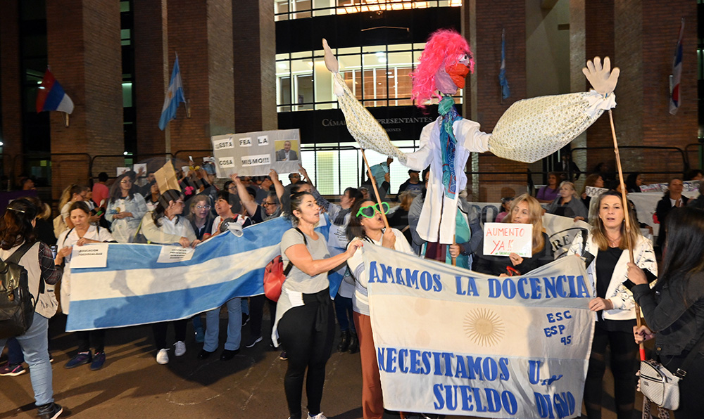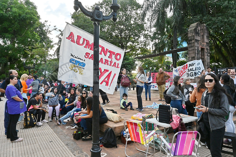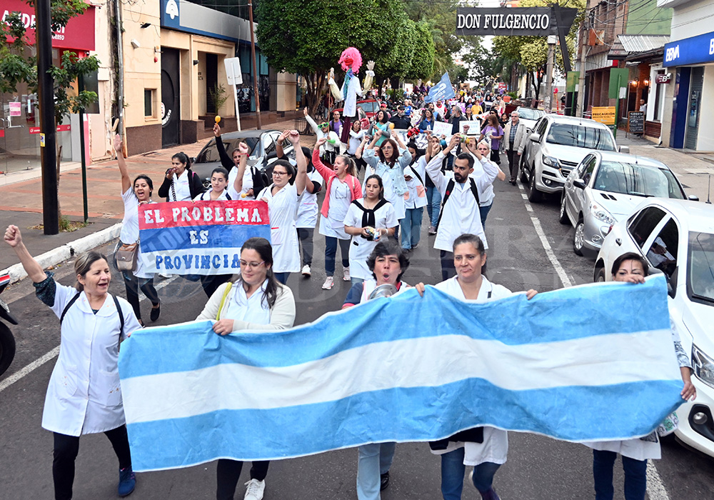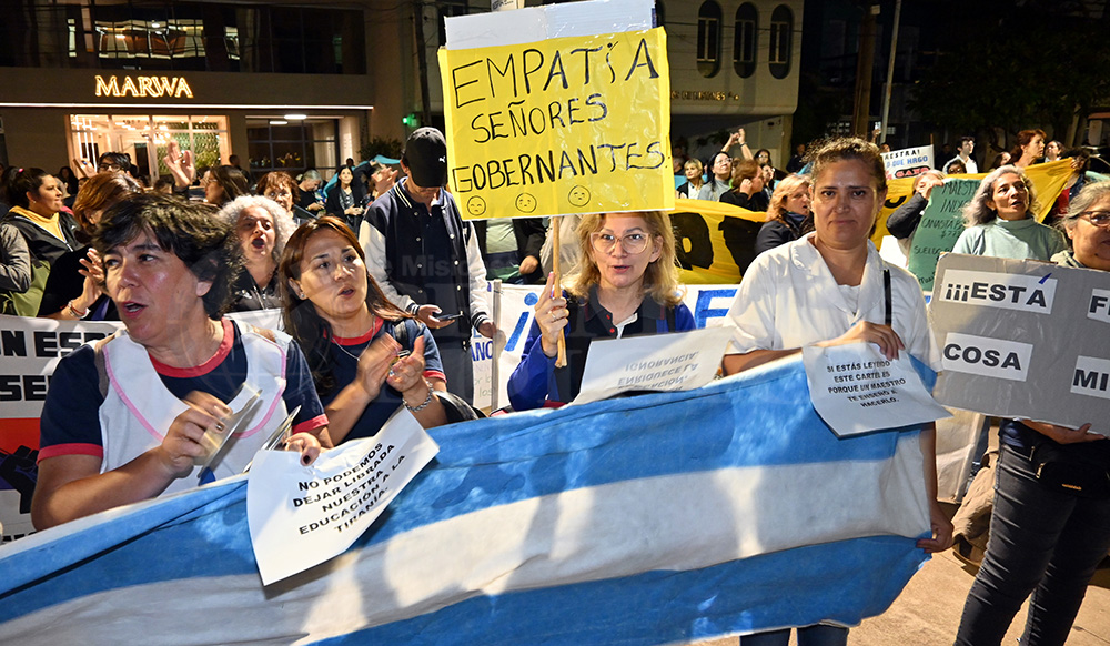 Cientos de docentes, tanto de la educación pública como privada, marcharon este jueves por las calles de Posadas y llevaron su reclamo salarial hasta las puertas del edificio del Poder Legislativo de Misiones, en el Parque Paraguayo, donde entregaron una nota e hicieron sentir su malestar ante los diputados provinciales que se encontraban sesionando en ese momento.