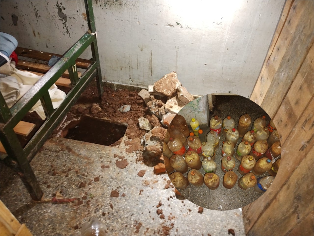 Los agentes del Servicio Penitenciario Federal hallaron dos pozos donde estaban ocultas 40 botellas que contenían la bebida fabricada ilegalmente por los internos.