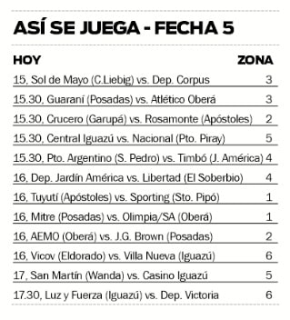 Otra zona que se puede definir es la 4. Es que Deportivo Jardín América será anfitrión del ya clasificado Libertad de El Soberbio y tiene bien claro que un triunfo lo pondrá en la siguiente instancia. El otro duelo será entre Puerto Argentino y Timbó, con este último casi eliminado y con el equipo de San Pedro aun con chances.