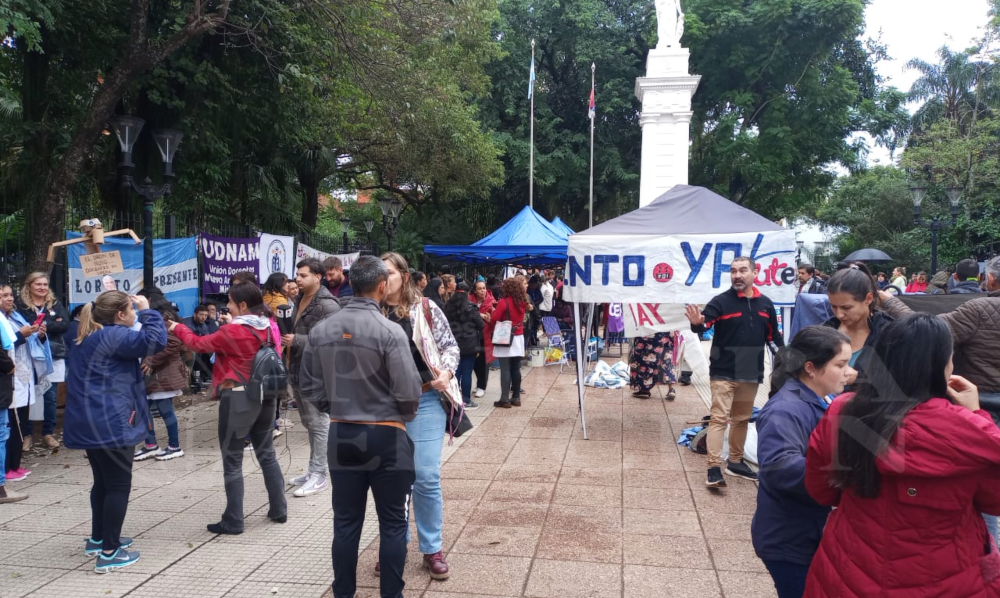 Docentes de toda la provincia de Misiones arribaron este lunes a Posadas donde se llevó a cabo una masiva vigilia que tuvo como epicentro la plaza 9 de Julio, frente a Casa de Gobierno.