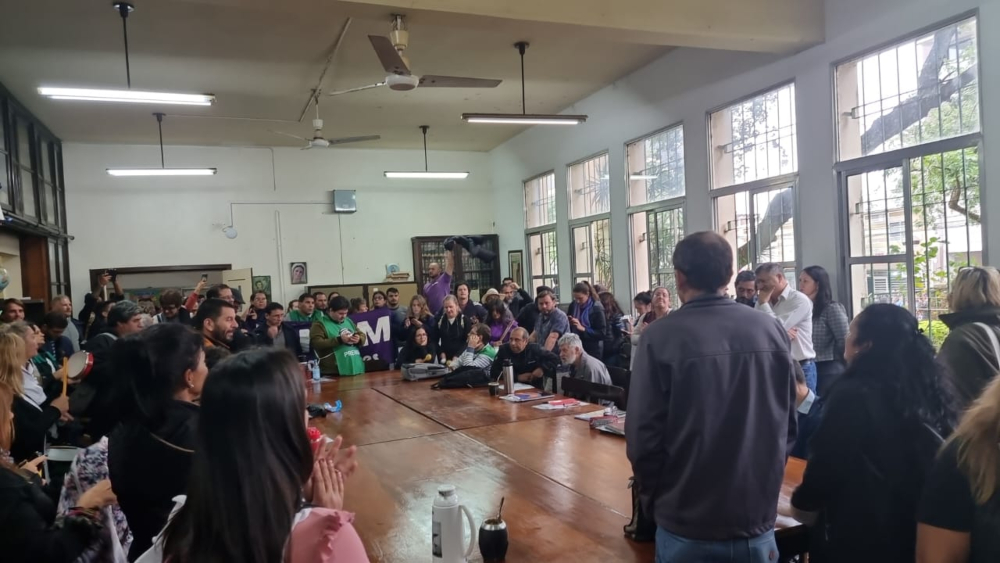 Mientras los educadores en la plaza se fueron enterando de qué pasaba en el establecimiento de calle Belgrano, comenzó una movilización hacia el lugar. Ya en el biblioteca de la escuela, los docentes “coparon” el lugar y pidieron un cuarto intermedio para exigir la presencia de Safrán.