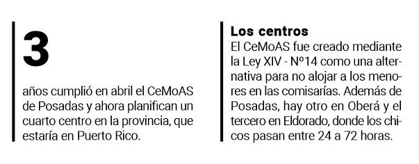 Para tratar con estos menores, Misiones puso en funcionamiento los Centros Modelo de Asistencia y Seguimiento para niños, niñas y adolescentes en conflicto con la Ley Penal (CeMoAS). En estos espacios, gestionados desde el Ministerio de Gobierno junto con Prevención de Adicciones y Control de Drogas, el objetivo es brindar un abordaje integral a los chicos que llegan por un período corto de tiempo, hasta ser devueltos a sus familias o trasladados a otras instituciones.