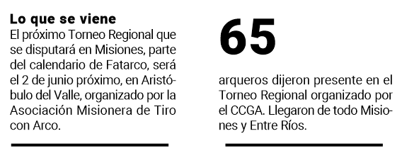 En cuanto a lo que se viene, el próximo Torneo Regional que se disputará en Misiones será el 2 de junio próximo, en Aristóbulo del Valle, organizado por la Asociación Misionera de Tiro con Arco.