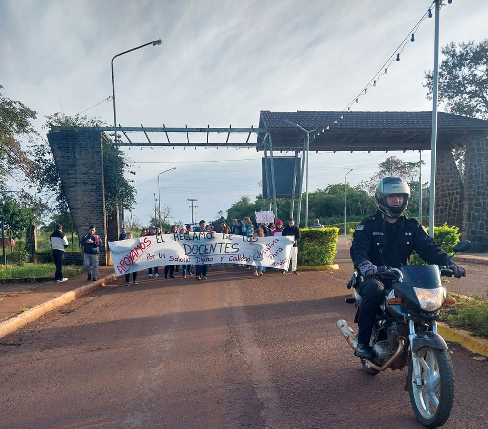 En Guaraní, departamento de Oberá, otro grupo de educadores se concentró en el acceso a la localidad y se desplazaron caminando por Av. Remedios de Escalada hasta Plaza San Martín.