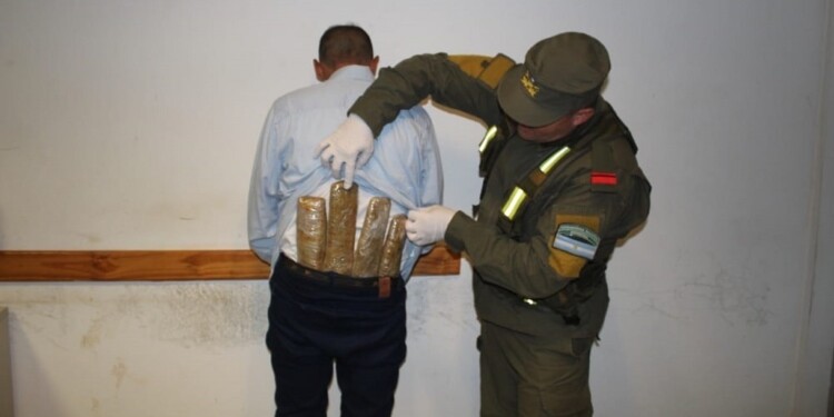 Ante esta situación, los gendarmes registraron exhaustivamente a ambas personas y constataron que transportaban ocho paquetes. Luego se efectúo las pruebas de “Narcotest” y se corroboró que se trataba de 2,345 kilogramos de “cannabis sativa”.