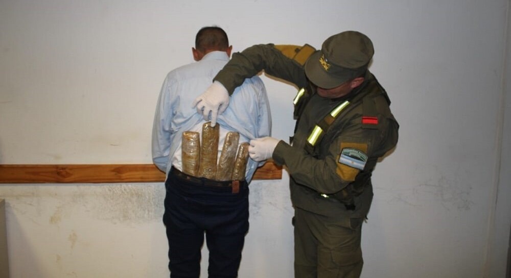 Ante esta situación, los gendarmes registraron exhaustivamente a ambas personas y constataron que transportaban ocho paquetes. Luego se efectúo las pruebas de “Narcotest” y se corroboró que se trataba de 2,345 kilogramos de “cannabis sativa”.