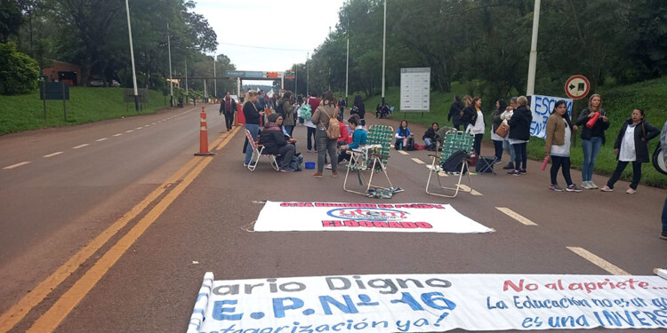 En Cerro Azul los educadores ya comenzaron con el corte de la ruta 14. También en la ruta 14, pero en Aristóbulo del Valle, los docentes cortan la ruta, pero solamente media calzada.
