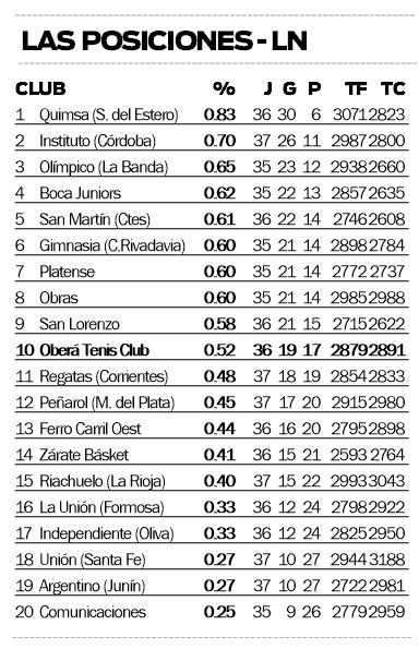 La Liga Nacional de Básquetbol (LNB) entró en la recta final de la fase de grupos y, aunque ya tiene su boleto asegurado, para Oberá Tenis Club será una buena oportunidad de cerrar con números positivos ya pensando en la siguiente instancia.