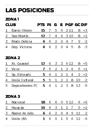 El otro juego que tuvo su inicio el último domingo, pero no pudo concluir, fue el clásico del norte entre San Martín de Colonia Wanda y Barrio Obrero de Puerto Esperanza. El encuentro, que estaba 0-0, debió suspenderse al comienzo del segundo tiempo por problemas en el sistema lumínico del estadio German Correa.