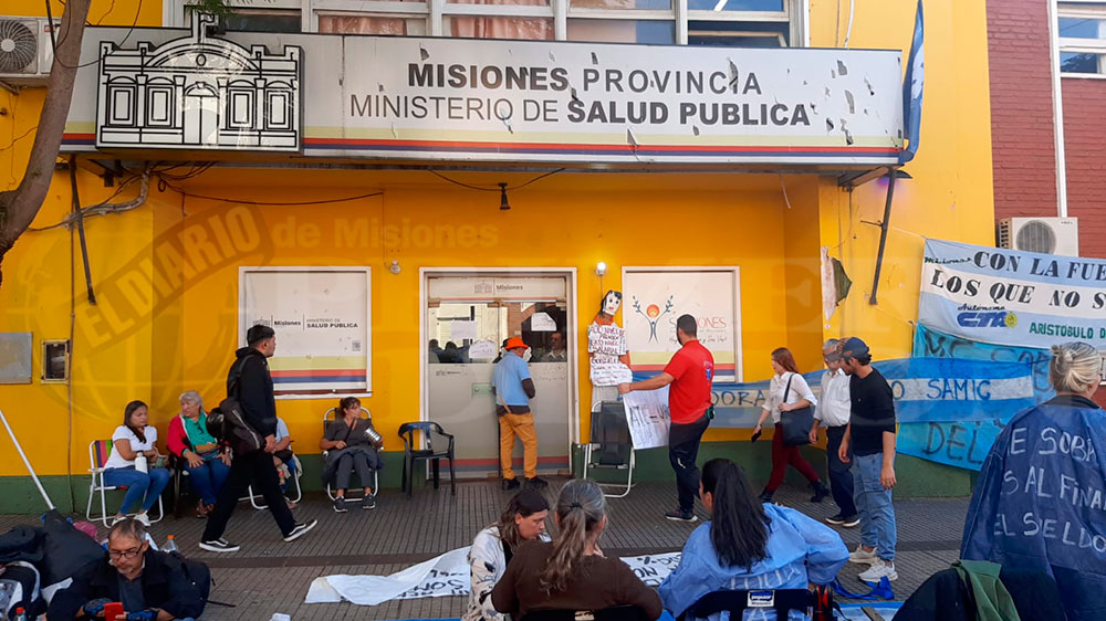 Ayer a la mañana comenzó la protesta de trabajadores autoconvocados de Salud frente al Ministerio ubicado sobre las calles Junín y Tucumán de Posadas. La concentración continúa este miércoles y manifestantes aseguraron que esperan recibir otra propuesta salarial, ya que no aceptaron el aumento que firmaron ayer dos seccionales de ATE y UPCN, porque “esa conducción no nos representa”.