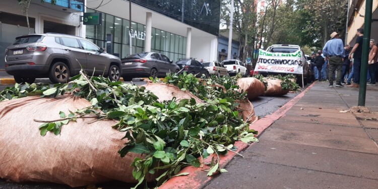 Un grupo de unos 50 productores yerbateros del Interior llegó a media mañana a Posadas para visibilizar la situación de crisis que tiene el sector a raíz de la desregulación, la caída del precio y la libre importación de materia prima desde Brasil y Paraguay.