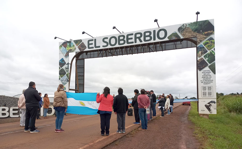En el marco de la conmemoración del 25 de Mayo, fecha en la que se formó el primer Gobierno Patrio en Argentina en 1810, un grupo de docentes en lucha de El Soberbio interrumpió el tránsito sobre la ruta 13 en el acceso a la ciudad. Allí los docentes entonaron las estrofas del Himno Nacional Argentino, seguidas de “Misionerita” y el himno de El Soberbio. El tránsito en la zona estuvo controlado por Gendarmería Nacional.