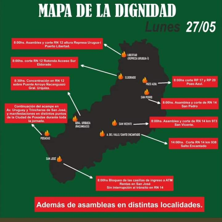 * 8:00hs. Asamblea y corte ruta Nacional 12 altura Represa Urugua-í en Puerto Libertad.