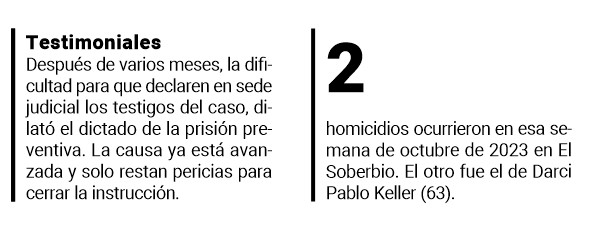 En octubre del año pasado y en el lapso de seis días, ocurrieron dos homicidios en El Soberbio. Uno de ellos fue el de Lino Camardelli, de 66 años, quien fue atacado a puñaladas. El señalado como autor sigue detenido y la causa está próxima a clausurarse.