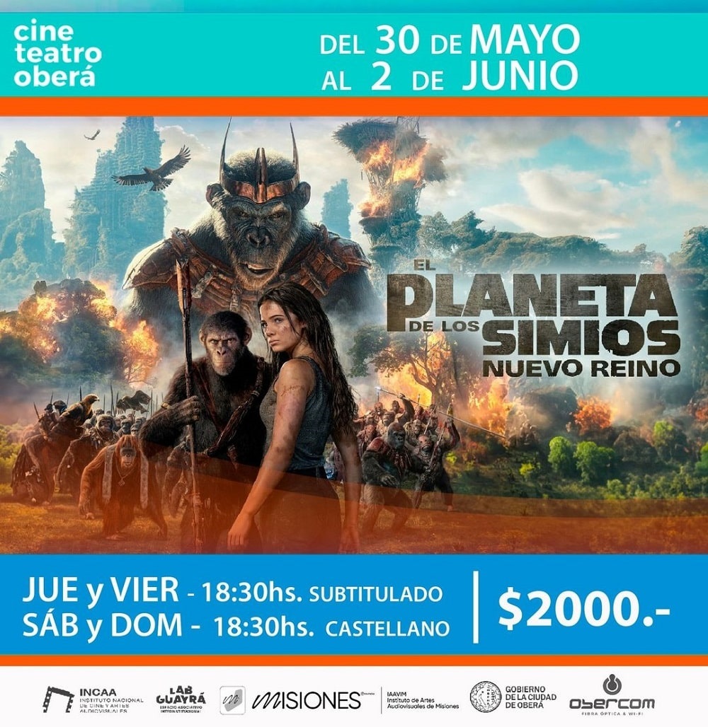También este fin de semana, a partir de las 18 horas llega “El planeta de los simios – Nuevo Reino”. El jueves y viernes subtitulado y el sábado y domingo doblado al español. Entrada: $2.000.