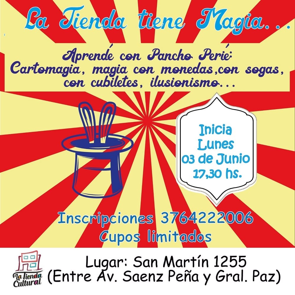 Este lunes 3 de junio a las 17.30 Pancho Perié ofrecerá un curso de cartomagia, magia con monedas, Ilusionismo y mucho más en “La Tienda Cultural” (San Martín N° 1255) de Posadas. Cupos limitados. Inscripciones al 3764222006