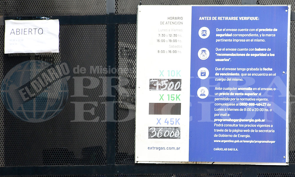Pero, anticipando esa revisión las compañías que fraccionan y distribuyen el gas ya aplicaron un ajuste propio, bastante dispar que oscila entre el 14% y un máximo de 30,7% según un relevamiento informal de este Diario, donde el precio pasó de $10.000 a $13.000 en Apóstoles y $.7.500 a $8.500 en la CELO de Oberá.