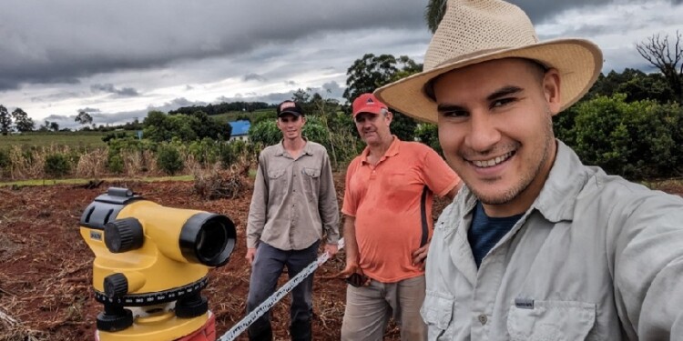 Muy cerca, en el yerbal de Rogelio Schoppan, las tareas abarcan sistematización de suelo para una nueva plantación, y poda de formación en las plantas que ya están en producción. Además, se trabaja en el diseño de caminos.