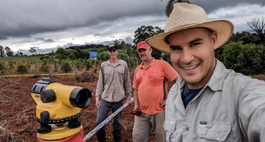 Muy cerca, en el yerbal de Rogelio Schoppan, las tareas abarcan sistematización de suelo para una nueva plantación, y poda de formación en las plantas que ya están en producción. Además, se trabaja en el diseño de caminos.