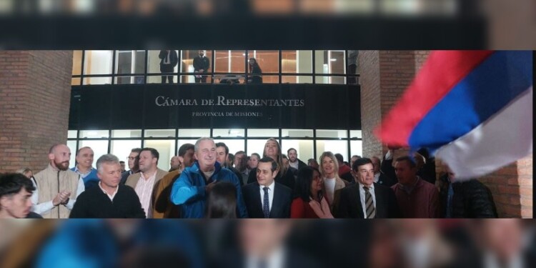 Una vez terminada la sesión, alrededor de las 19.30 horas, el diputado Rovira salió a su saludar a los militantes con el gobernador, Hugo Passalacqua, el vicegobernador, Lucas Romero Spinelli, intendentes y ministros.