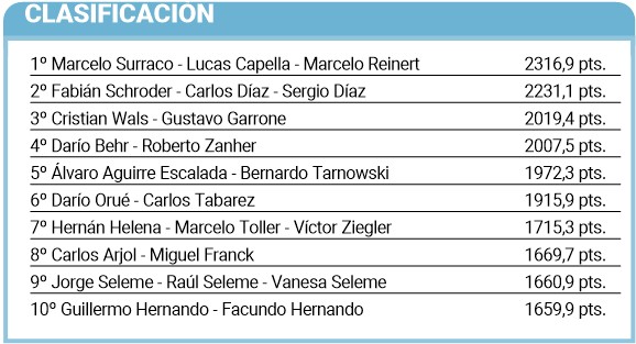 Los ganadores presentaron una planilla con 15 especies capturadas y lograron completar ocho cupos. “Esta vez tuvimos una muy buena pesca de las especies de escama”, dijo Lucas Capella, uno de los integrantes del equipo.