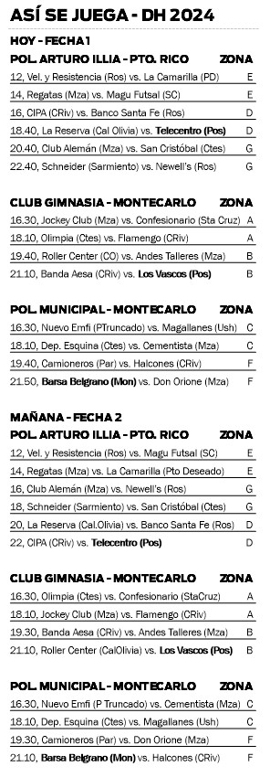 El certamen se jugará tanto en el Club Gimnasia como en el Polideportivo Municipal de Montecarlo, así como en el Polideportivo Arturo Illia de Puerto Rico, donde hoy desde las 12 se disputará el partido inaugural entre Velocidad y Resistencia de Rosario y La Camarilla de Puerto Deseado, Santa Cruz.