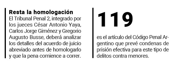 En audiencia de visu encabezada durante los últimos días de mayo ante el fiscal del Tribunal Penal 2 de la Primera Circunscripción Judicial, Vladimir Glinka, el tutor o padrastro de la víctima acordó el monto de pena y reconoció su culpa por “abuso sexual con acceso carnal agravado por la convivencia (cantidad de hechos indeterminada), corrupción de menores, amenazas reiteradas, todo en concurso real”.