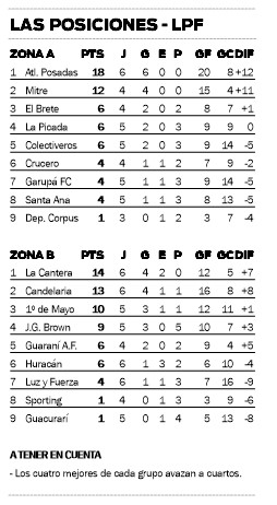La actividad continuará el miércoles con el desarrollo de otros tres encuentros: Santa Ana se medirá con Deportivo Corpus, Mitre recibirá a La Picada y Crucero del Norte hará lo propio ante Garupá FC. Todos jugarán a las 15.30.