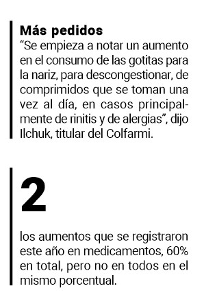Agregó que “el segmento de analgésicos subió bastante, más que nada los de venta libre. Y más se nota que un medicamento aumentó en los de alto costo, por más que sean en los porcentajes referidos. Principalmente son los que se utilizan para tratar los problemas de diabetes, próstata o dolencias de artrosis, en especial de las personas mayores, las cuales en un gran porcentaje tienen cobertura social, que si es PAMI, le cubre el 100%”.