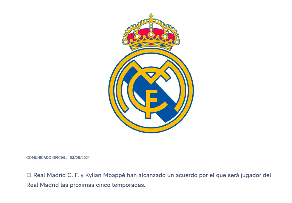 Fue el propio club español, campeón hace dos días de la decimoquinta Champions League de su historia, quien comunicó que Real Madrid y Mbappé “han llegado a un acuerdo”, por lo que el exjugador del PSG y de la Selección de Francia, se pondrá la camiseta de la Casablanca.