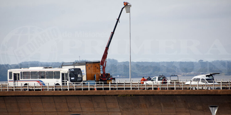 Comenzaron trabajos de reparación del alumbrado en el puente Posadas-Encarnación