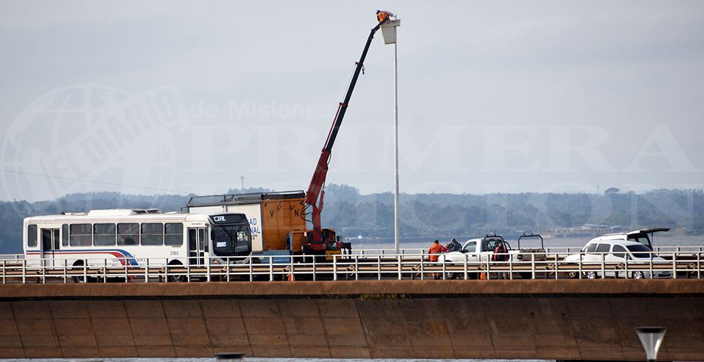 Comenzaron trabajos de reparación del alumbrado en el puente Posadas-Encarnación