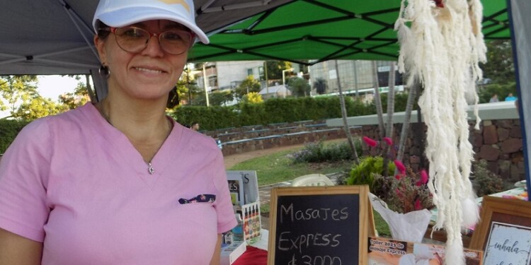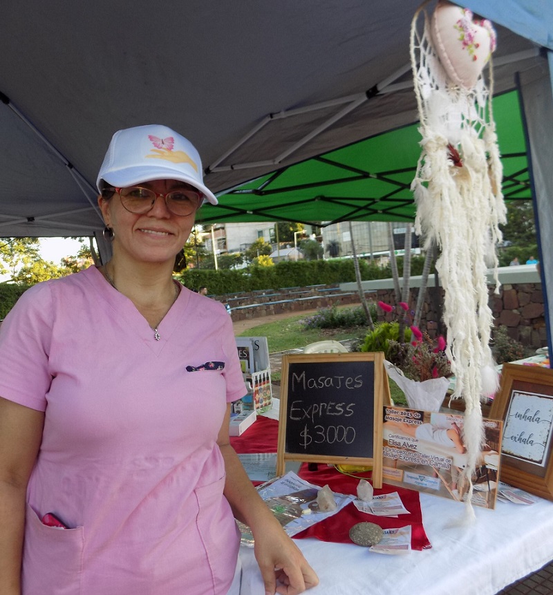 En la foto la masoterapeuta Lizzi Alvez, quien en las ferias brinda masajes express y concientiza a cerca del bienestar personal. Su Instagram @maseterapeuta_lizzi